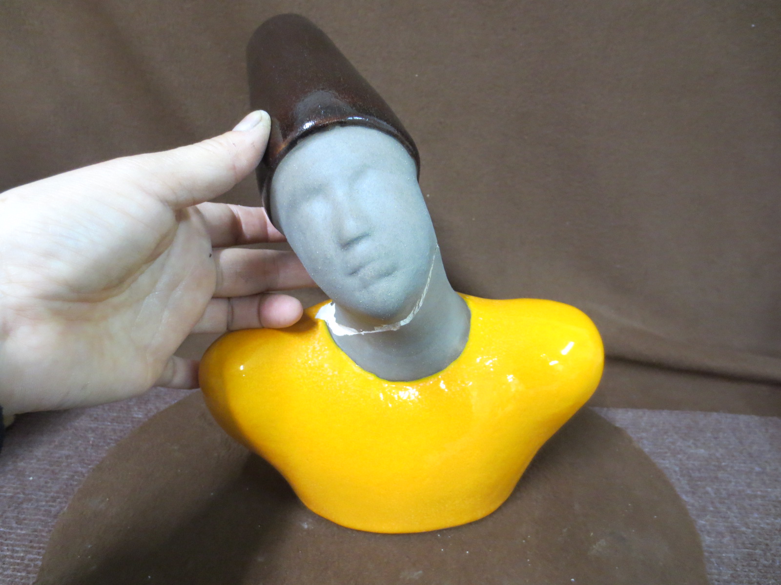 完全に首が折れてしまい、割れ口同士を当ててみても塗装部分の剝落、隙間もかなり大きいものでした。
