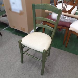 緑の張地も含め気に入っていらっしゃる方が多く、この椅子でも、似た色の落ち着いた柄で張り替えています。