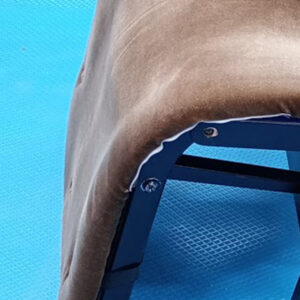 また、くたっていた背座面は3種のスポンジで新規製作、生地はシンコール パール(ブルー)で張替え、くるみボタン仕様にして取り付けています。